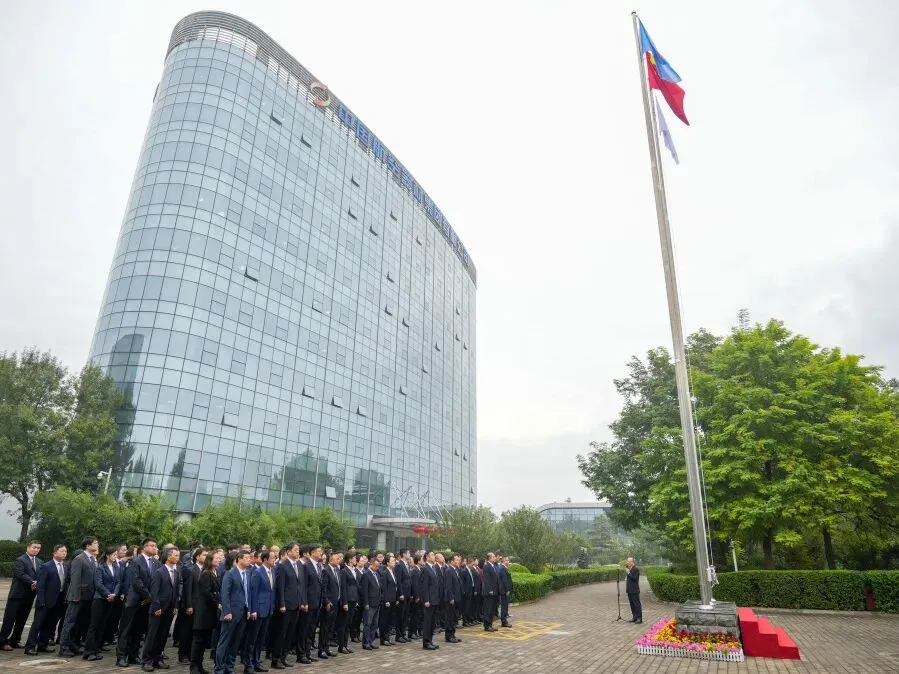 上午9时整,伴随着雄壮的《义勇军进行曲》,鲜艳的五星红旗在集团总部冉冉升起。全体人员精神饱满、庄严肃穆,向国旗行注目礼。随后,中国航材司旗伴随司歌《让飞行更顺畅》升起,飘扬在集团公司上空。这一刻,全体人员心中涌动着对伟大祖国的崇高敬意和对公司45年辉煌成就的无尽自豪。