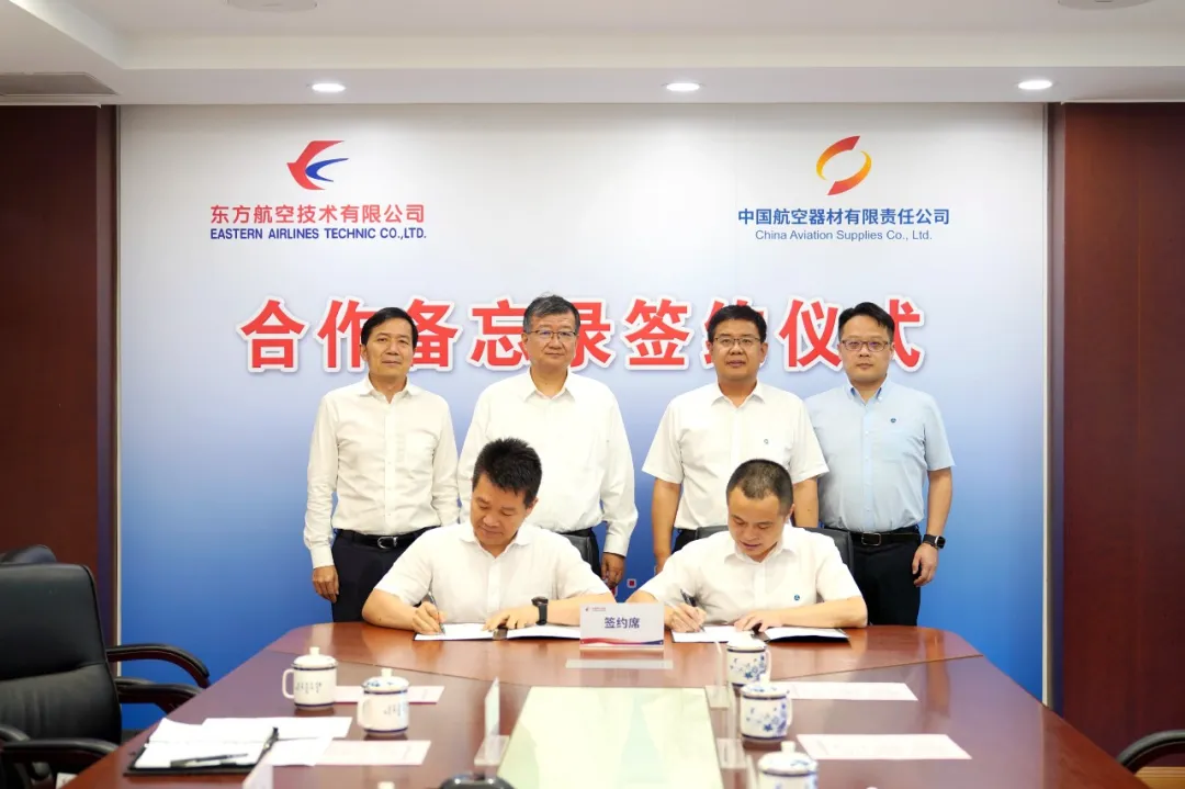 2025年8月27日,中国航空器材有限责任公司(以下简称 “中航材有限公司”)与东方航空技术有限公司(以下简称 “东航技术”)在上海隆重举行合作备忘录签署仪式。此次合作备忘录的签署标志着中航材有限公司与东航技术正式开启合作新篇章,是双方基于长期发展战略,秉持优势互补、双赢互利原则作出的重要决策。双方将以此次合作为起点,充分发挥各自优势,携手应对行业挑战,推动在国产民机保障、周转件共享等七大领域的深度合作,为中国民航业高质量发展注入强劲动力。