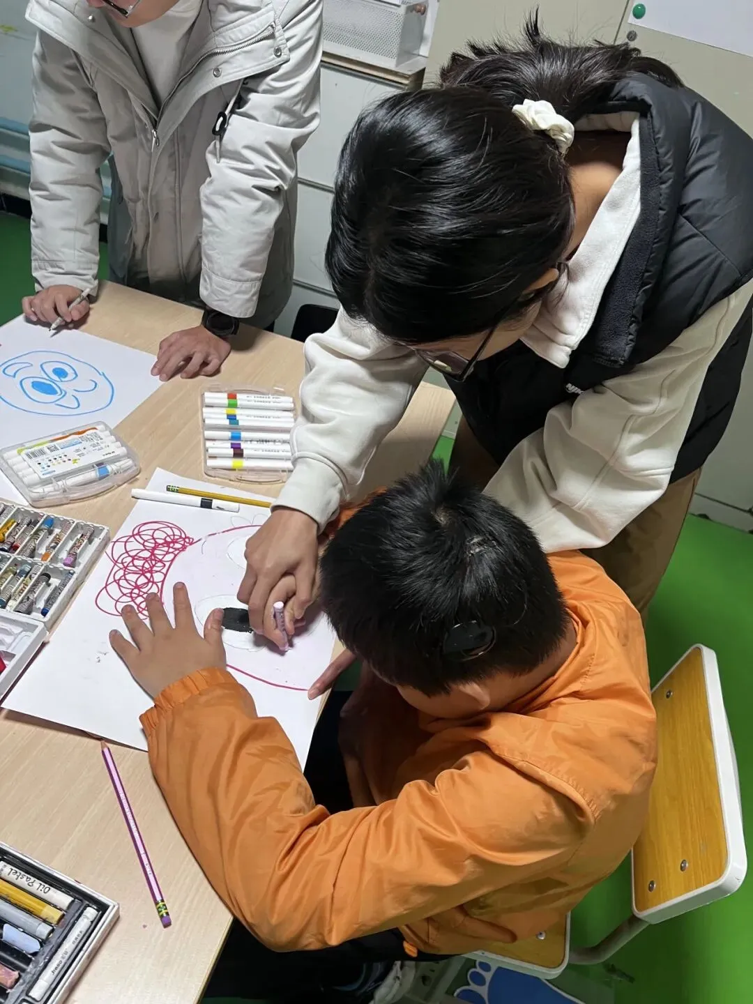 活动中,孩子们展现出更为丰富的表达意愿,他们会主动迎上真诚的目光,用略带重复却充满温度的问题与志愿者交流。尽管每个互动都简单质朴,但他们能敏锐感知每一次回应,在往复的对话中建立信任,在耐心的陪伴中获得成长。